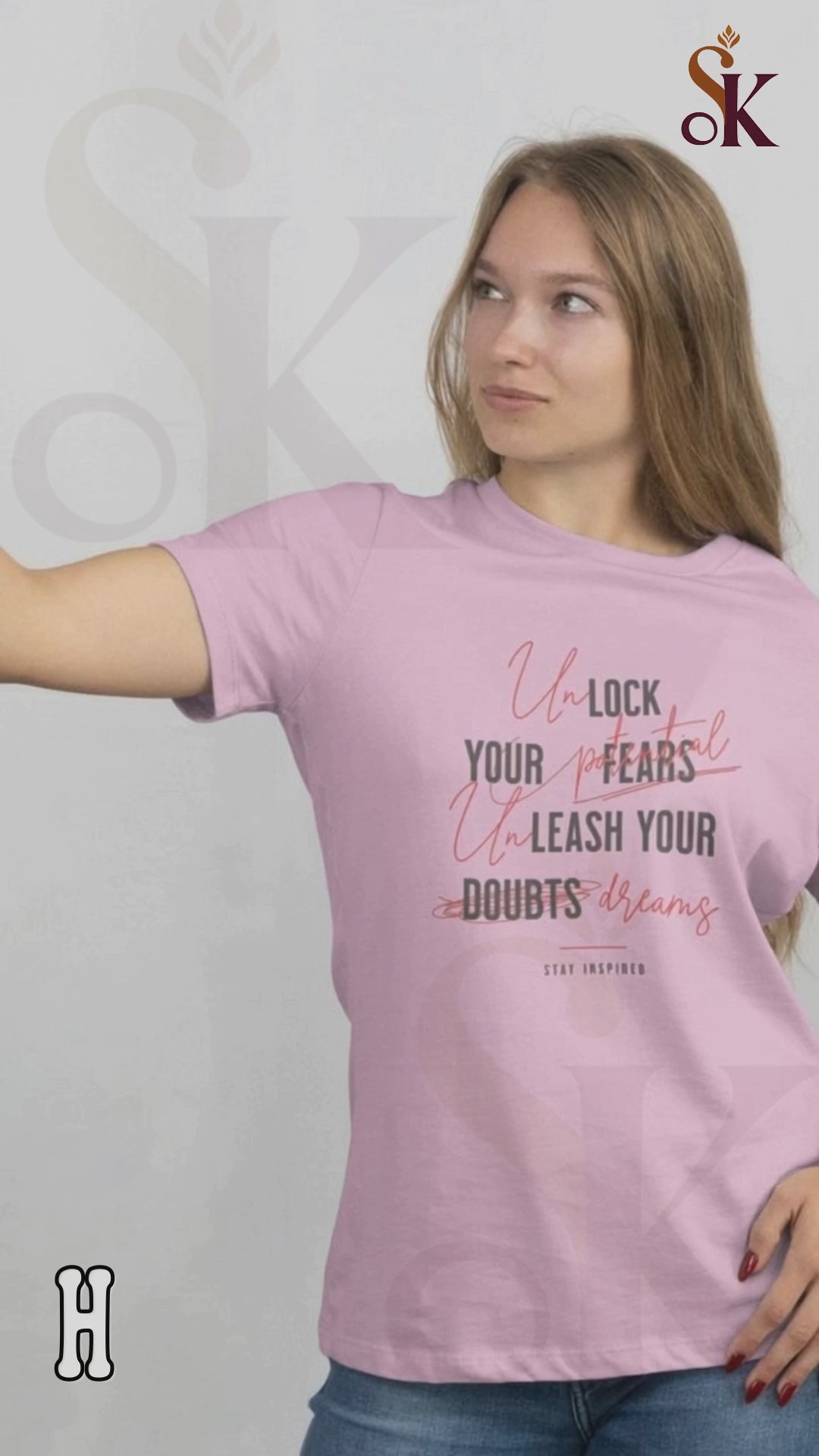 This isn't just a T-shirt — it's a quiet revolution. A subtle yet powerful nudge to break barriers, doubt less, and believe more. Designed in a soft pastel hue, this inspirational tee for women features an empowering quote layered in delicate embroidery-style typography: Unlock your fears. Unleash your doubts. Stay inspired. It’s a statement piece for the ones redefining confidence — not through loudness, but through quiet courage. The loose silhouette drapes effortlessly, making it perfect for slow mornings, bold moves, or anything in between.