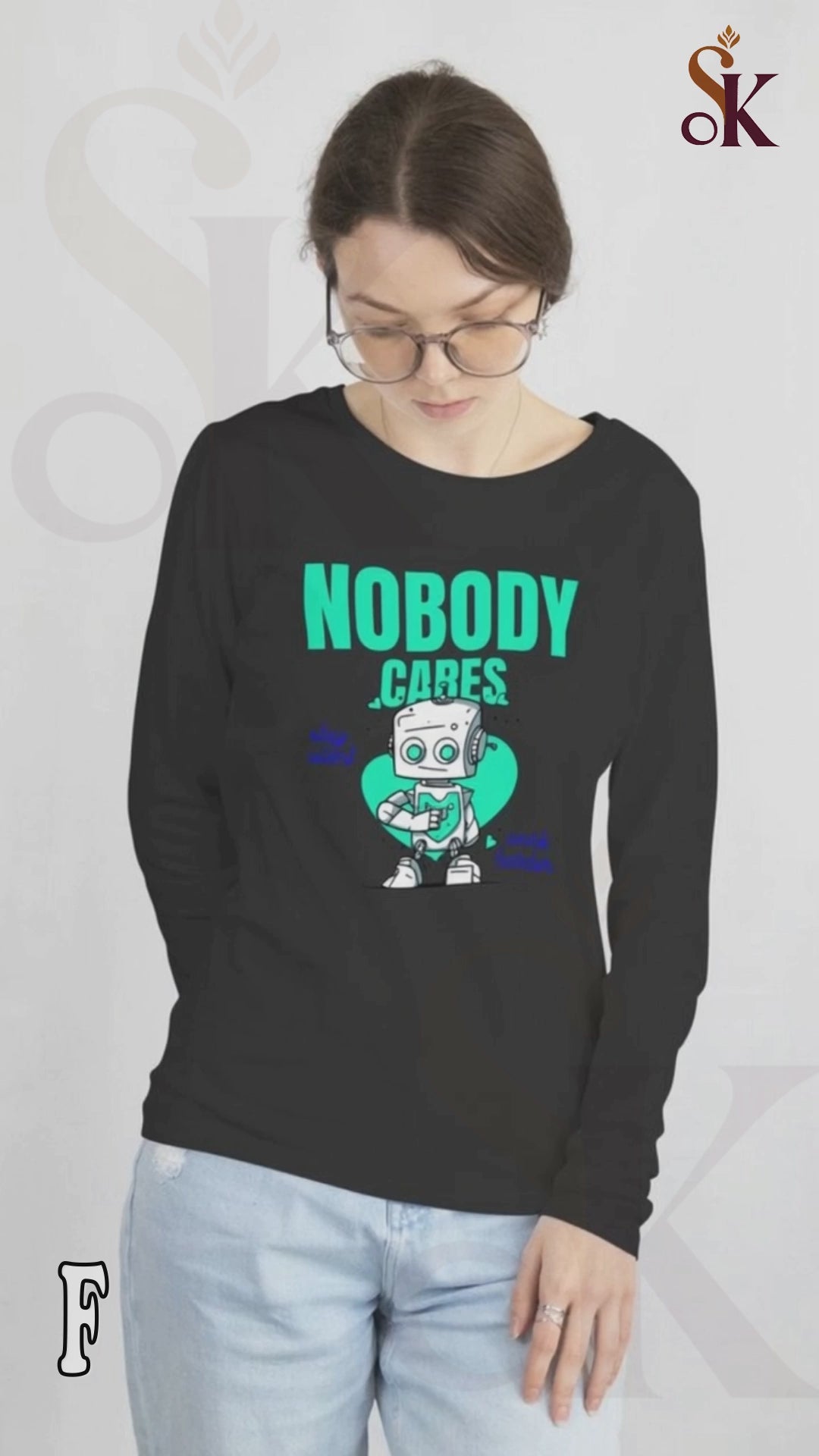 NOBODY CARES (Women Full Sleeve T-shirt) (F)