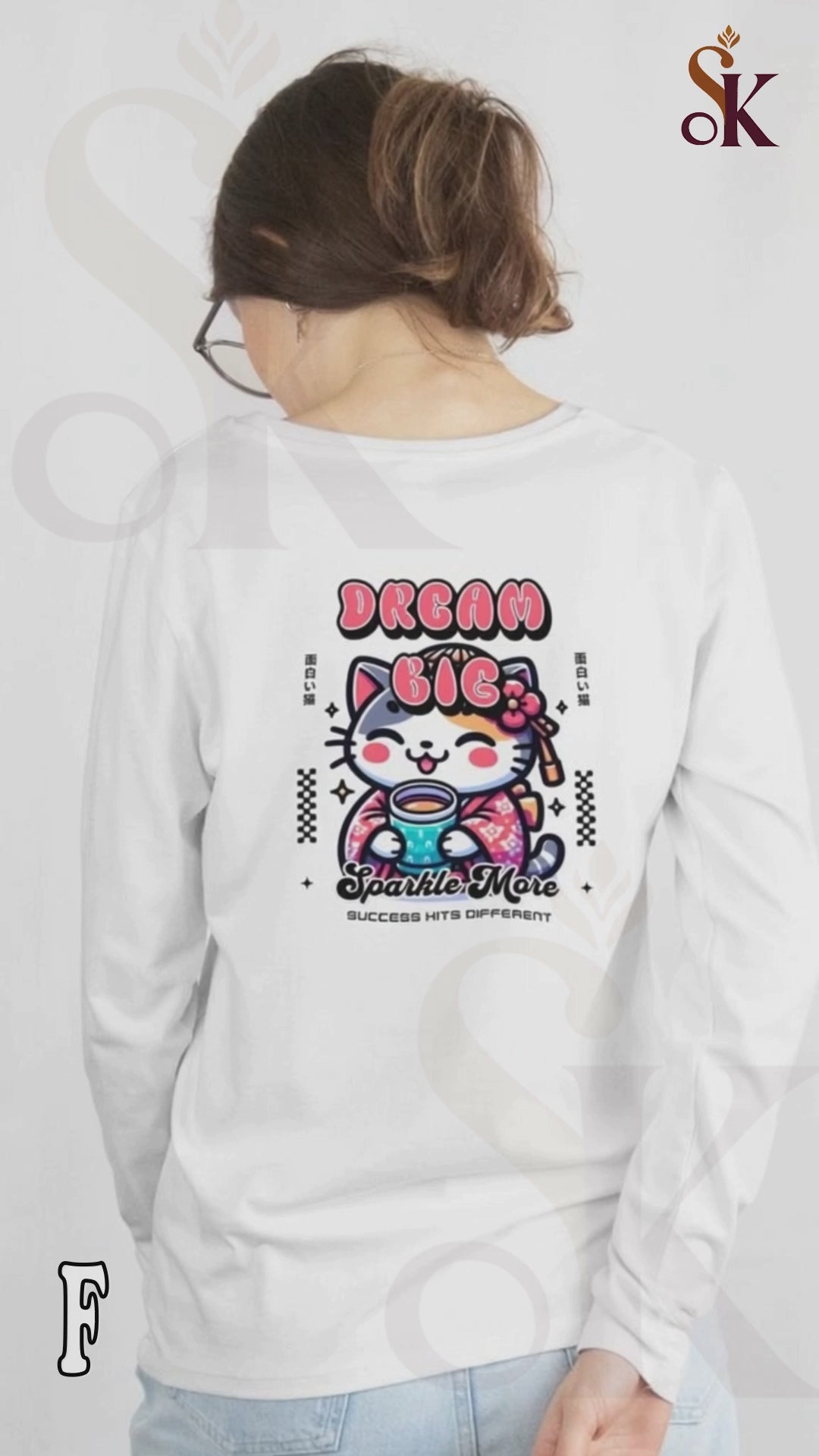 Success hits different when you sparkle more. The "Dream Big" full sleeve t-shirt from Skarva Couture is your daily dose of cute confidence, featuring an adorable lucky cat (Maneki-neko) holding a cup of dreams and flaunting a ...
