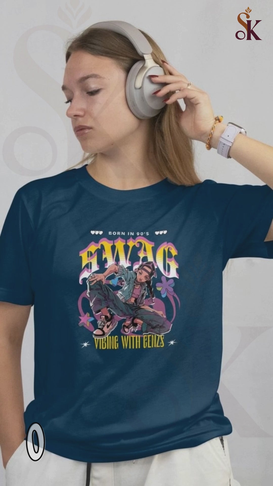 This isn’t just an oversized t-shirt — it’s a whole mood. A throwback to the golden era of cassette tapes, boom boxes, and unapologetic self-expression. Born in the 90s, built for today — this oversized tee blends retro vibes with modern street swagger. Featuring a vibrant anime-style girl graphic and graffiti-inspired typography, this oversized tee screams confidence, creativity, and chaos in the best way. The bold print “SWAG” and “Vibing with Girlz” makes it more than just fashion it’s a declaration of energy, rebellion, and pure vibe.