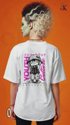 Fuel your aesthetic with the “Youth Culture Manga” oversized t-Shirt, a nod to Tokyo streetwear and the expressive world of anime. Featuring a monochrome manga character framed in electric pink type and Japanese katakana script...